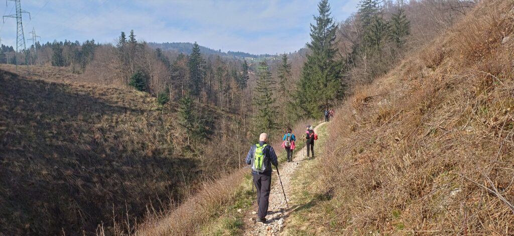 Pohoda v četrtek se udeležilo 14 Hitrih polžkov. Iz ŠP Log smo se ob 8 uri odpeljali na Vrhniko, na izhodišče “Pri štirni” na tankovski cesti. Dan je bil lep in ob prijetnem klepetu smo odšli proti Staremu malnu. Izbrali smo nekaterim nepoznano, bolj mirno pot, ob pobočju hriba. Po slabi uri smo prišli do koče v soteski potoka Bela, kjer je včasih stal eden najstarejših mlinov Stari maln. Danes lahko vidimo samo še ostanke zidu in lepo obnovljeno mlinsko kolo. Po krajše postanku smo pot nadaljevali po novourejeni planinski poti do Lintverna, izvira potoka Bela. To je naravni spomenik in kraška znamenitost, ker bruha vodo v določenih presledkih, vmes pa izvir delno ali povsem presahne. O njem je pisal že J.V. Valvasor, da bruha zmajeve mladiče. Prav pri njem so verjetno dobili navdih za učno pot “Tempelj zmajev Lintverna. Pot smo nadaljevali do vrha 733 metrov visoke Planine nad Vrhniko. Na 22 metrov visok razgledni stolp se nismo povzpeli, smo si pa v koči privoščili cankarjevo kavo. Po krožni poti smo se vrnili na naše izhodišče. Med spustom smo nabrali velik šopek pomladnega cvetja in lepo oblikovan kamen za našega Andreja, ker je praznoval okrogel rojstni dan. Zaželeli smo mu še veliko pohodov, on pa nas je lepo pogostil Pri Kranjcu. Hvala Andrej.